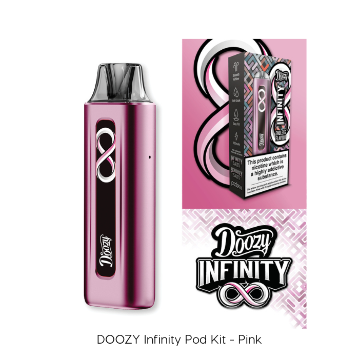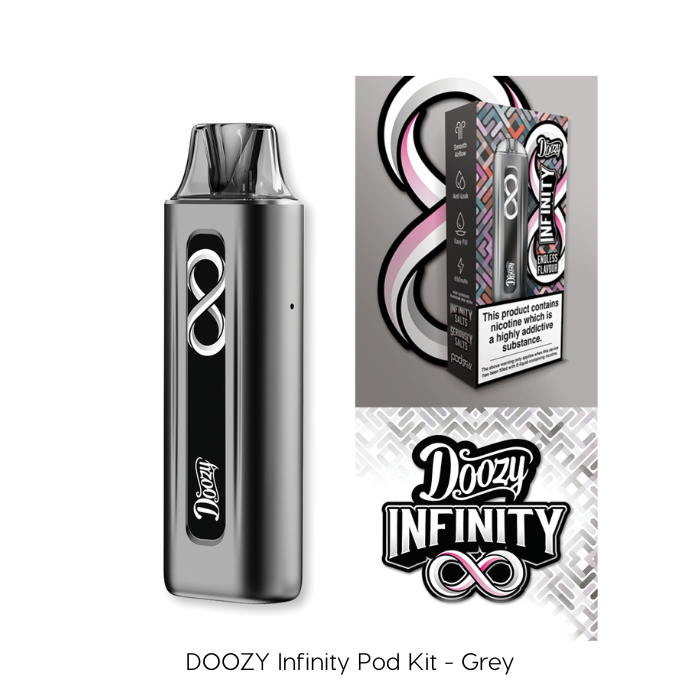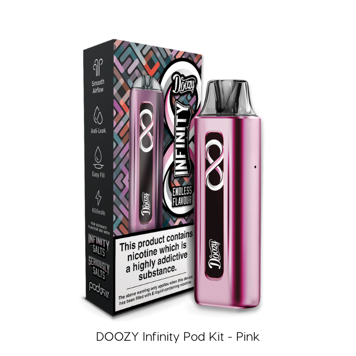 The Doozy Infinity Pod Kit is a slick rechargeable pod kit designed for smooth airflow, bold flavour, and all-day reliability. With its powerful 650mAh battery and anti-leak pod-fill system, this device delivers a consistently smooth experience whether you’re new to vaping or a seasoned pro. Simply fill your cartridge with your favourite Nic Salt E-liquid and get ready for endless flavour on the go.